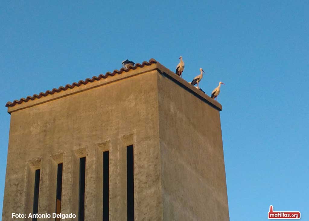 En Matillas suelen hospedarse en los puntos más altos del pueblo: el campanario, la chimenea de la fábrica o la catenaria del tren.