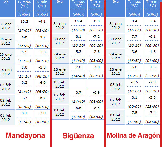 Aquí pueden ver una comparativa con las temperaturas de las estaciones de Mandayona, Sigüenza y Molina de Aragón.