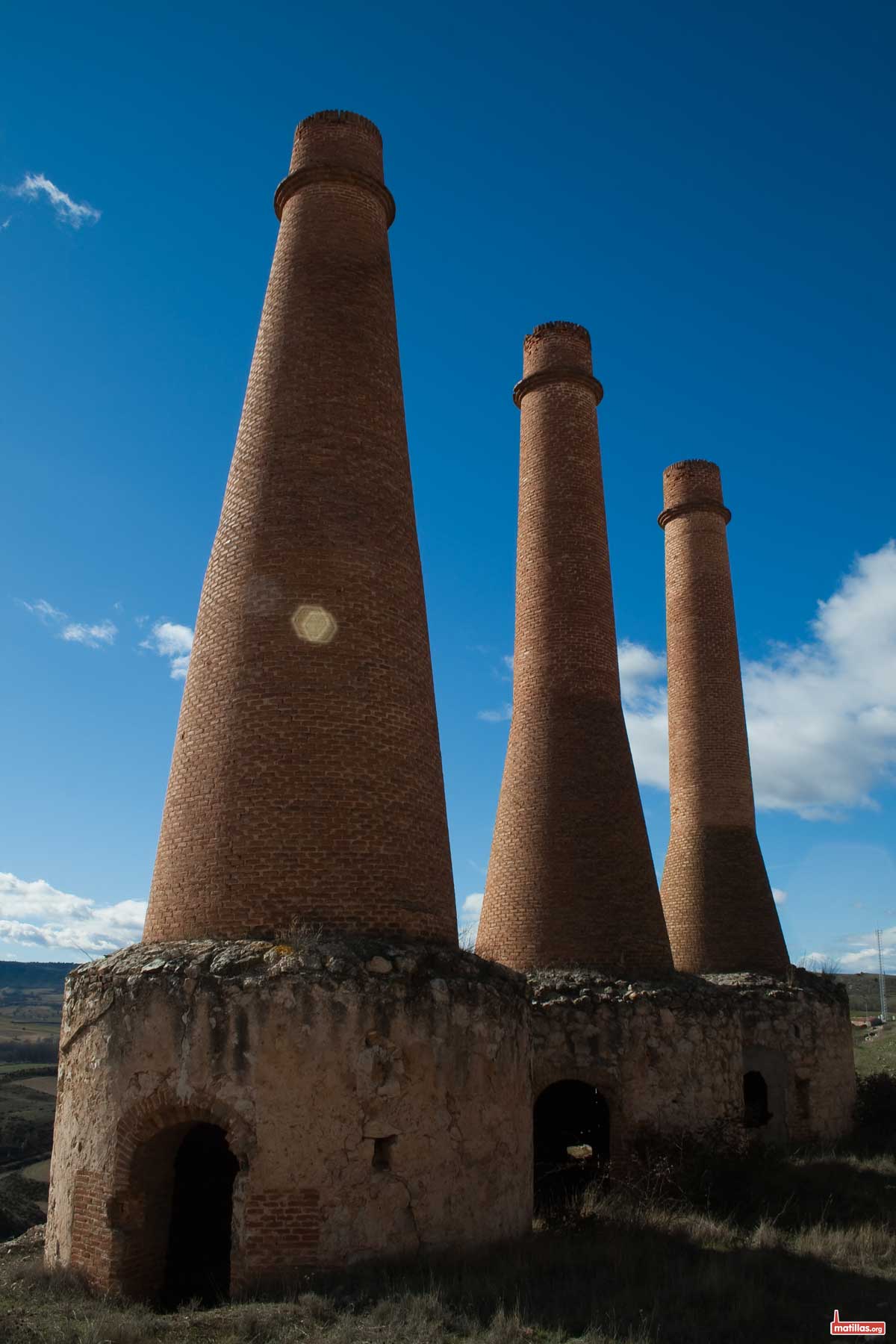 Para terminar y no alargarme en explicaciones, solamente reseñar que las tres chimeneas que perduran tienen diferentes formas geométricas en los remates, que las hacen visibles desde el pueblo.(2)